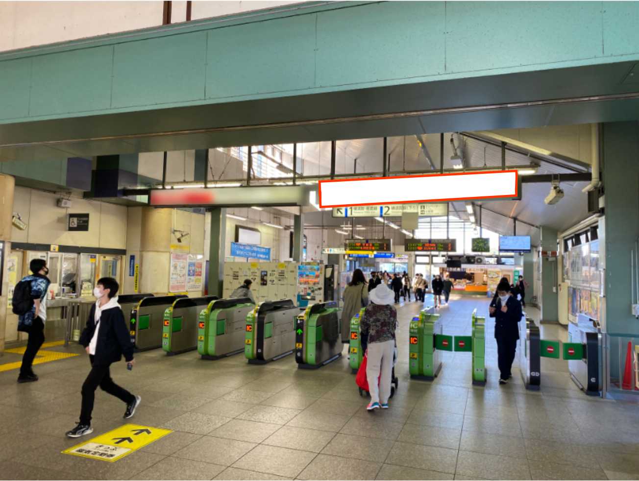 ■改札に向かわれるお客様が多くご覧になる、視認性の大変高い横長看板です。