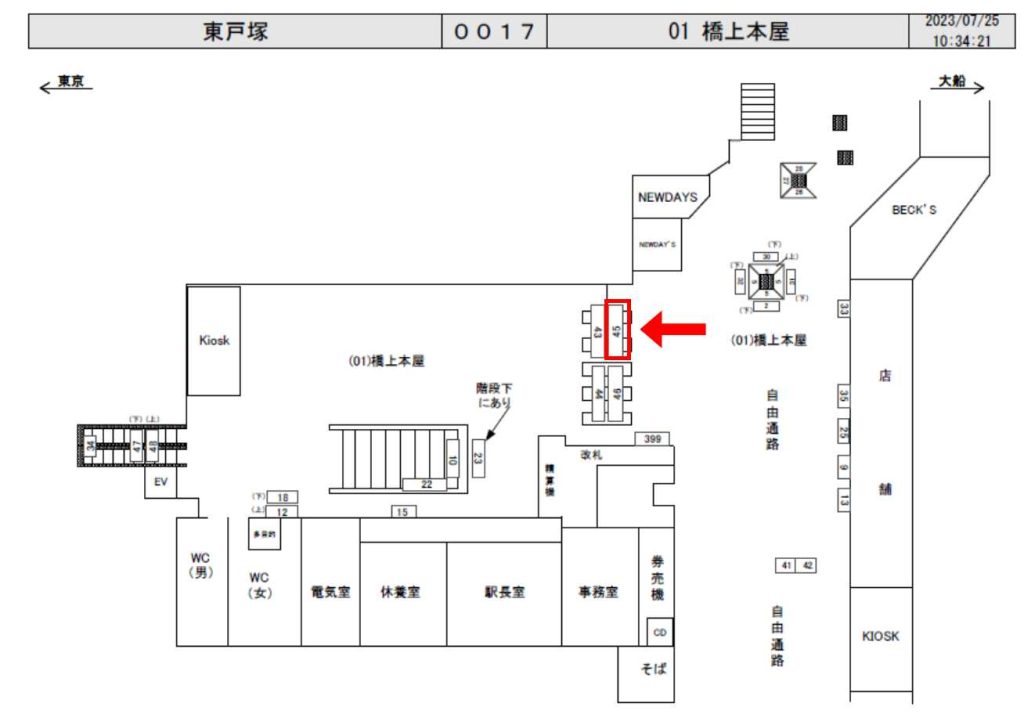JR東戸塚駅の改札外、改札すぐ上に設置されている看板です。