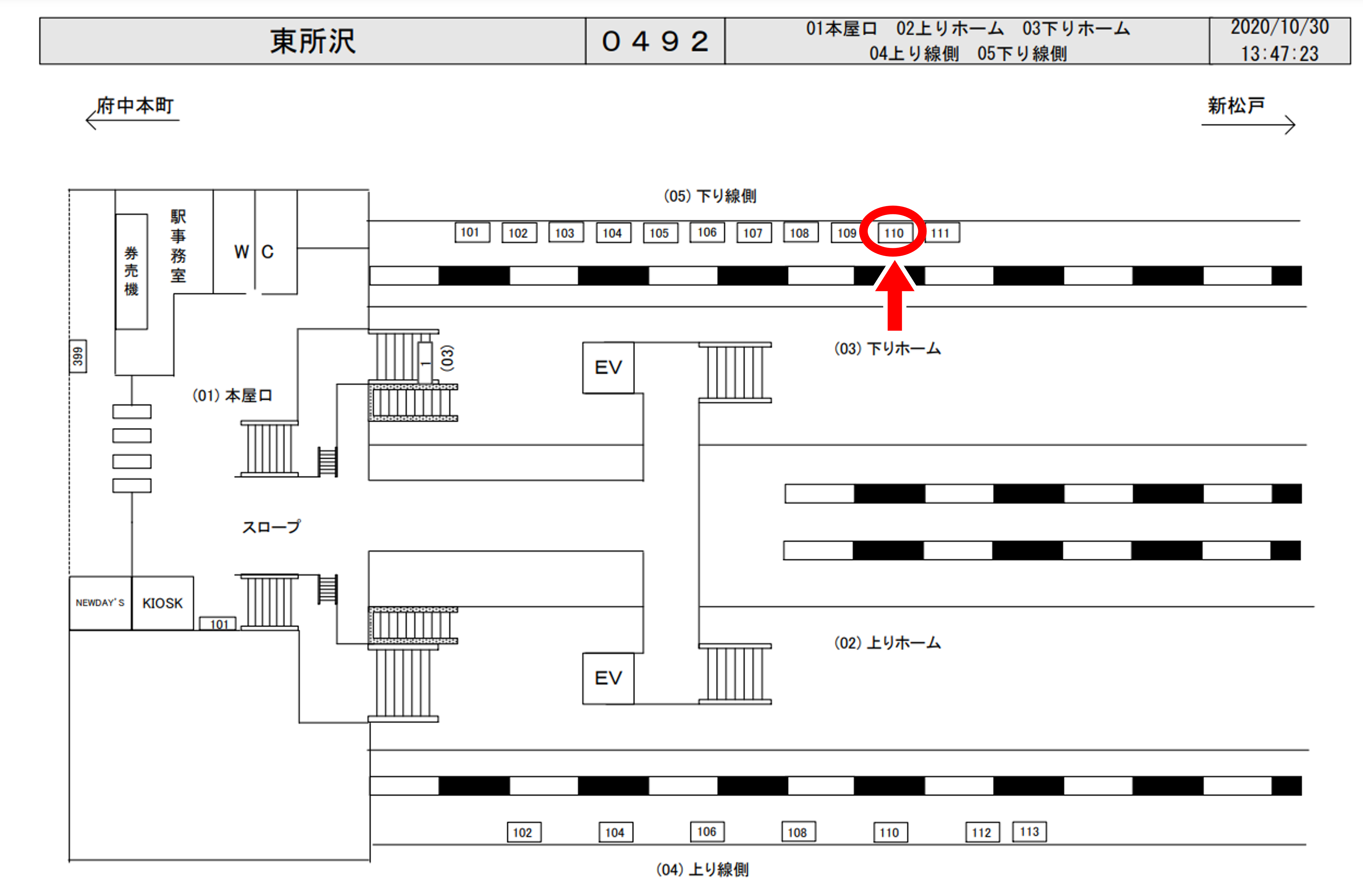 JR東所沢駅(武蔵野線)下り線ホーム前に設置されている看板です。