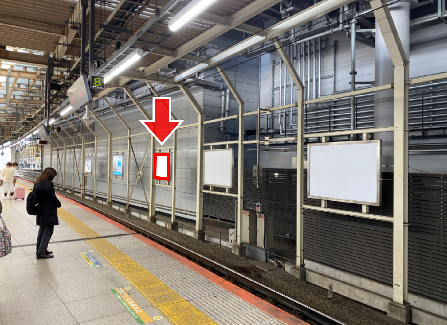 ■電車を待っているお客様、下車されて改札へ向かうお客様がご覧になる看板です。