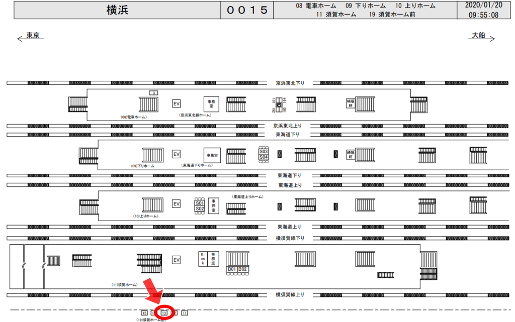 JR横浜駅 横須賀線・湘南新宿ラインの上りホーム前、中央北改札へのホームエレベーター付近に設置された看板です。