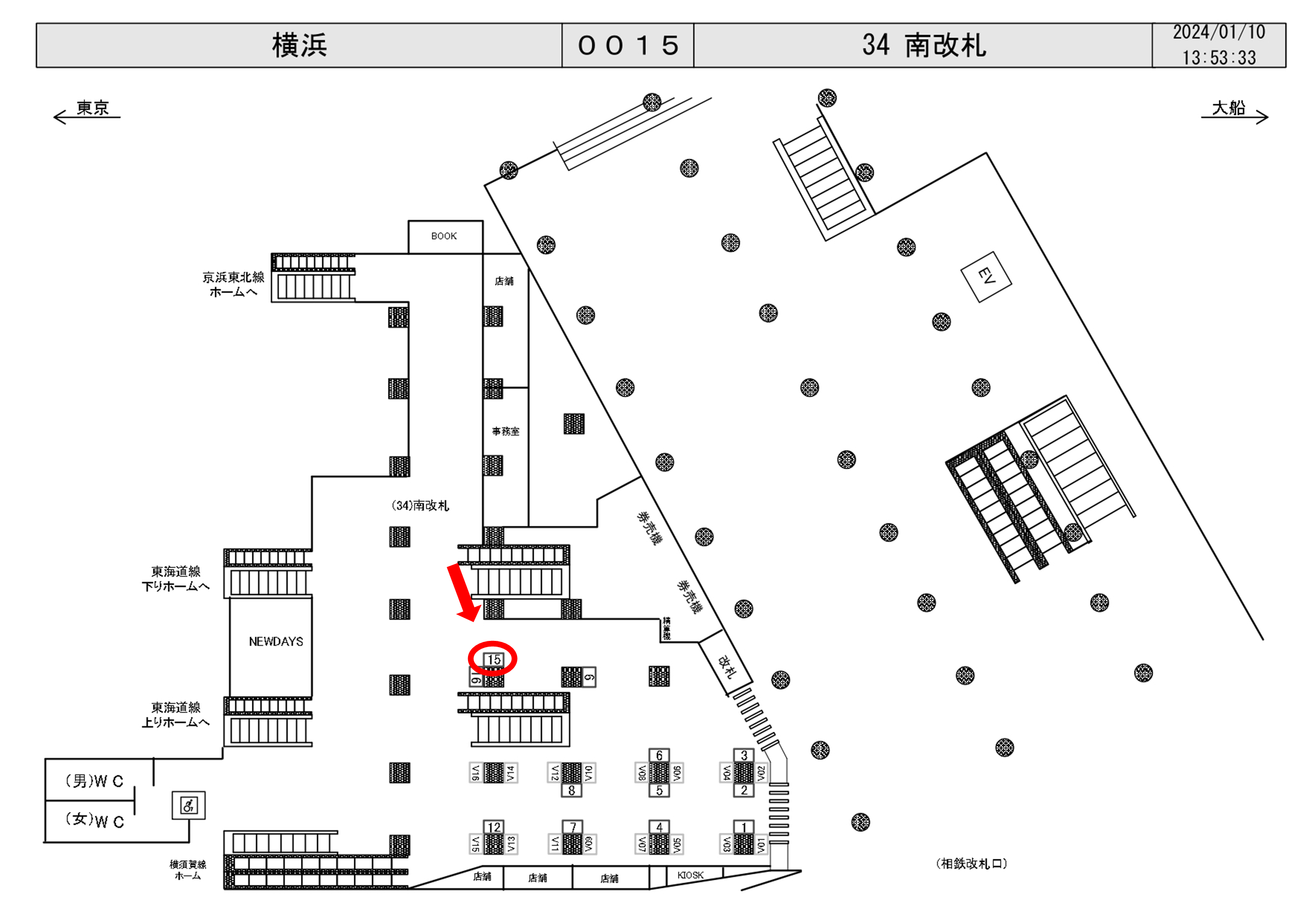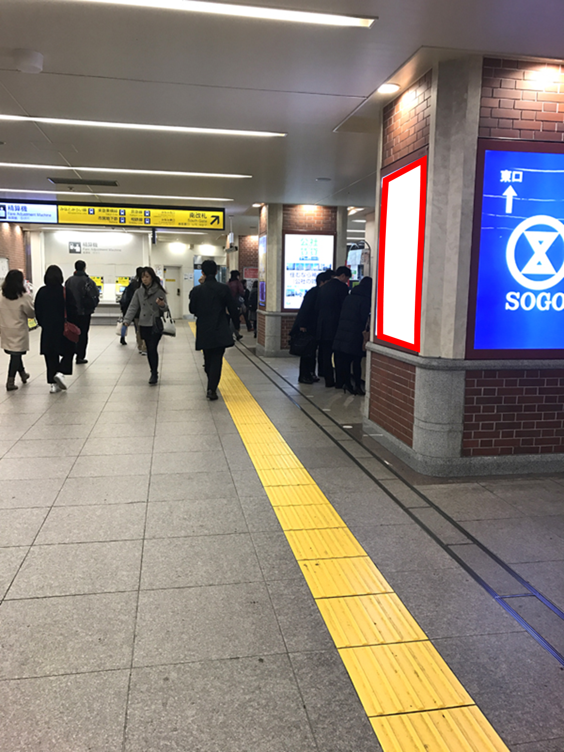 JR横浜駅の南改札出口付近の柱に設置された電飾看板です。