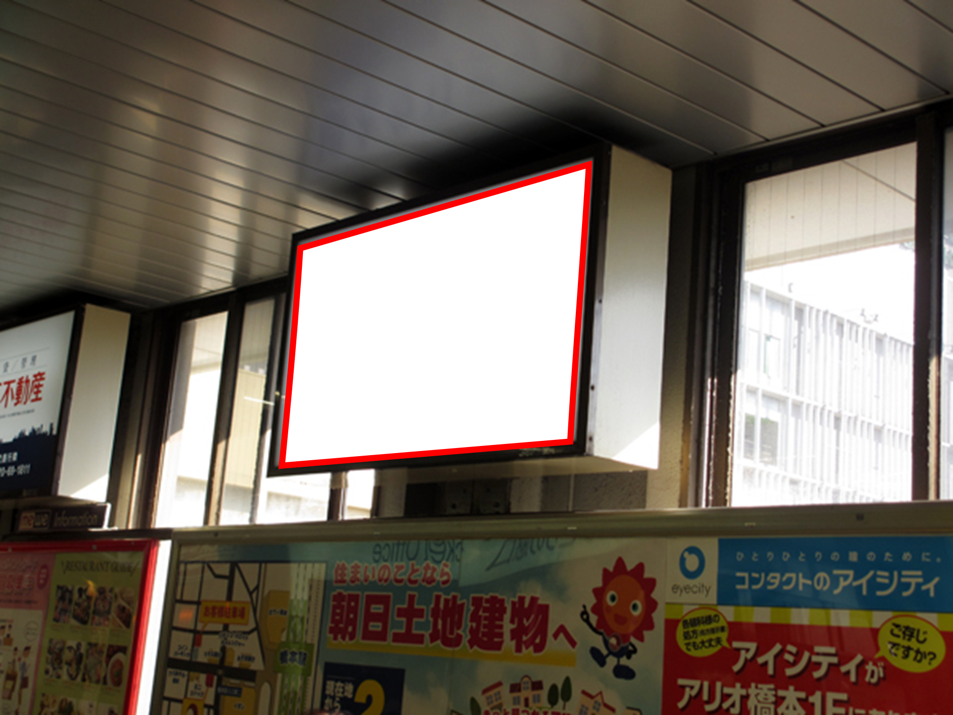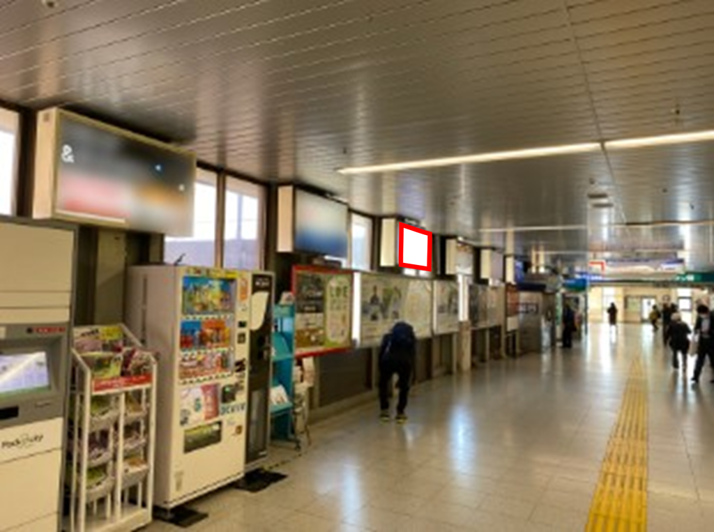 ■改札横の自由通路壁面にあり多くの方にご覧いただける視認性の高い看板です。