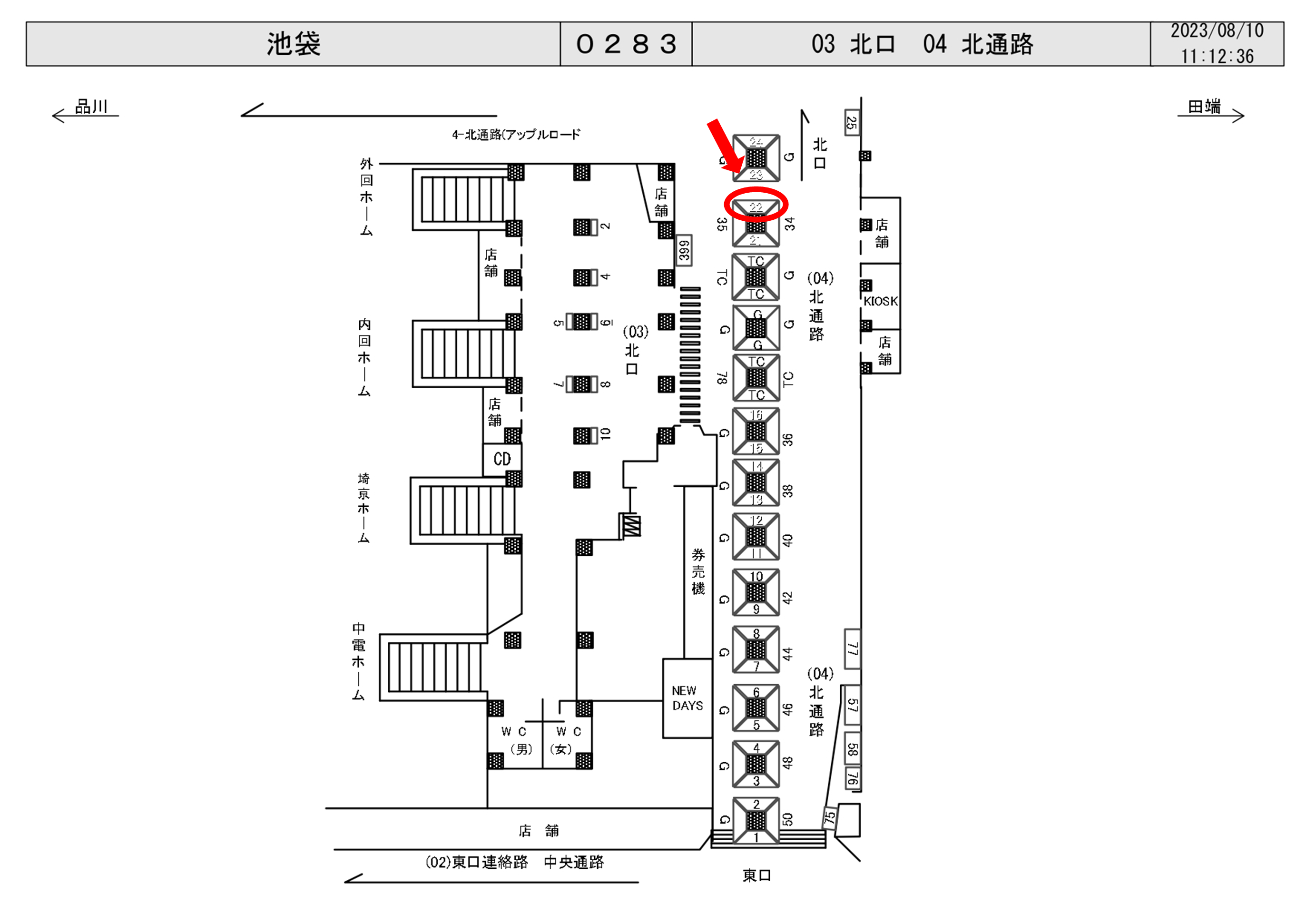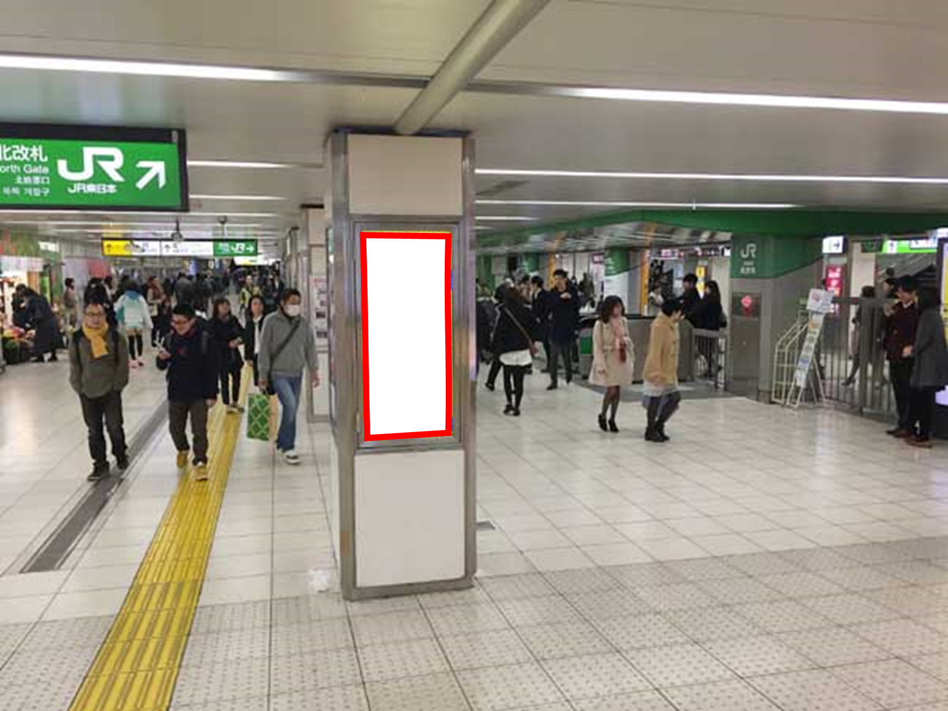 JR池袋駅の改札外、北通路の北改札付近の北口寄り柱面に設置された駅看板です。