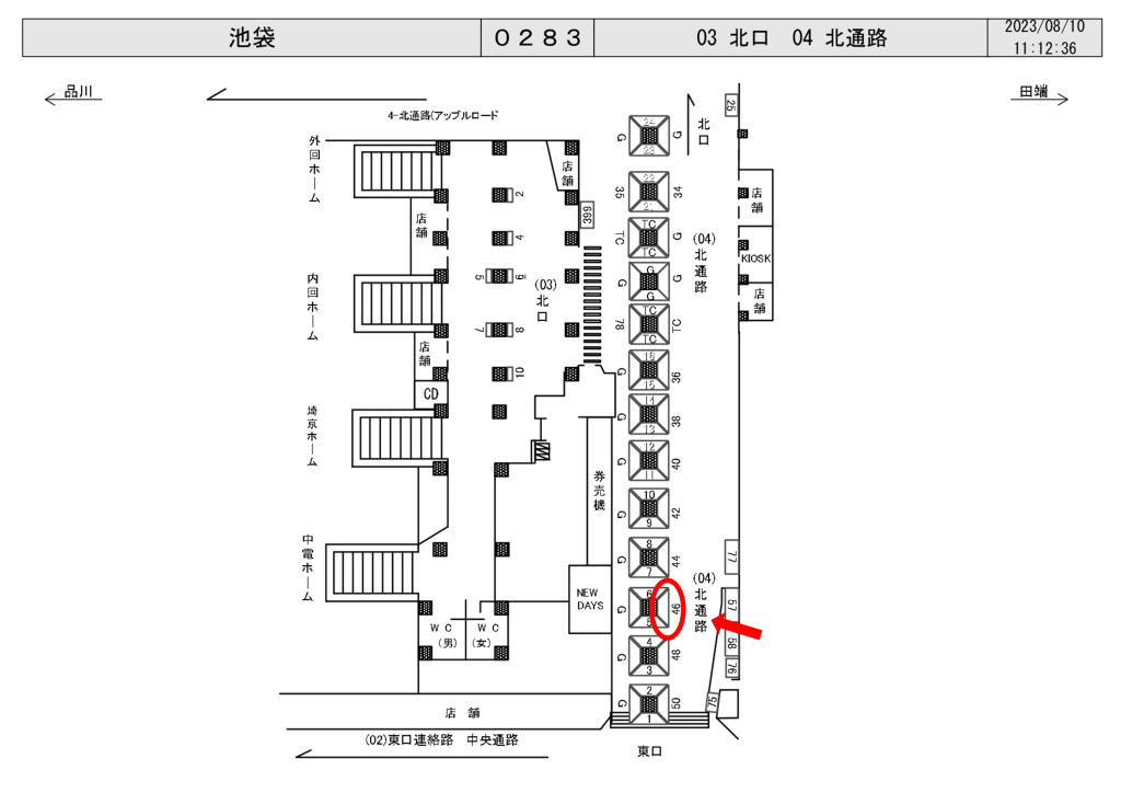 JR池袋駅の改札外、北通路の北改札券売機前の柱面に設置された駅看板です。