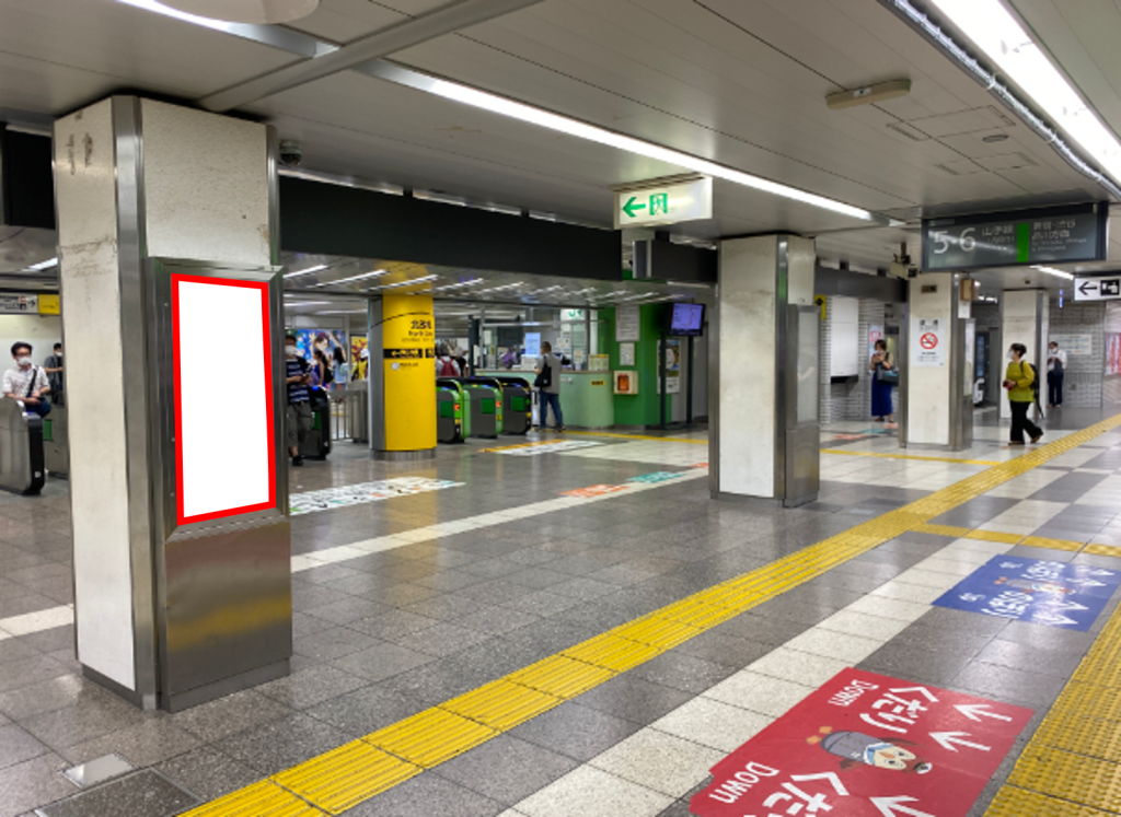 JR池袋駅、北改札内の内回りホーム階段下の柱面に設置された看板です。