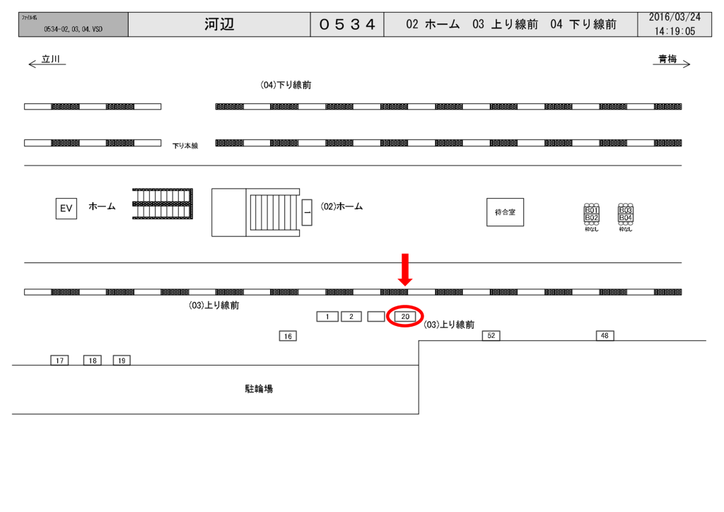 JR河辺駅(中央線、青梅線)の上り線ホーム前に設置されている看板です。