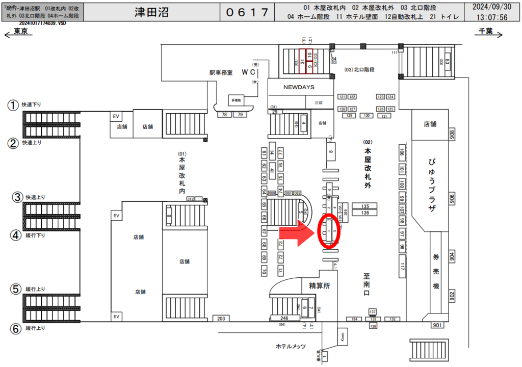 JR津田沼駅は一日の乗降客数が202,654人、総武線(快速)、総武線(各駅停車)が発着する駅です。
