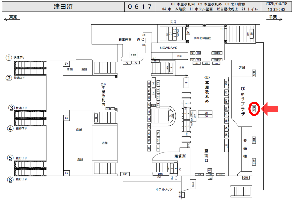 JR津田沼駅は一日の乗降客数が202,654人、総武線(快速)、総武線(各駅停車)が発着する駅です。