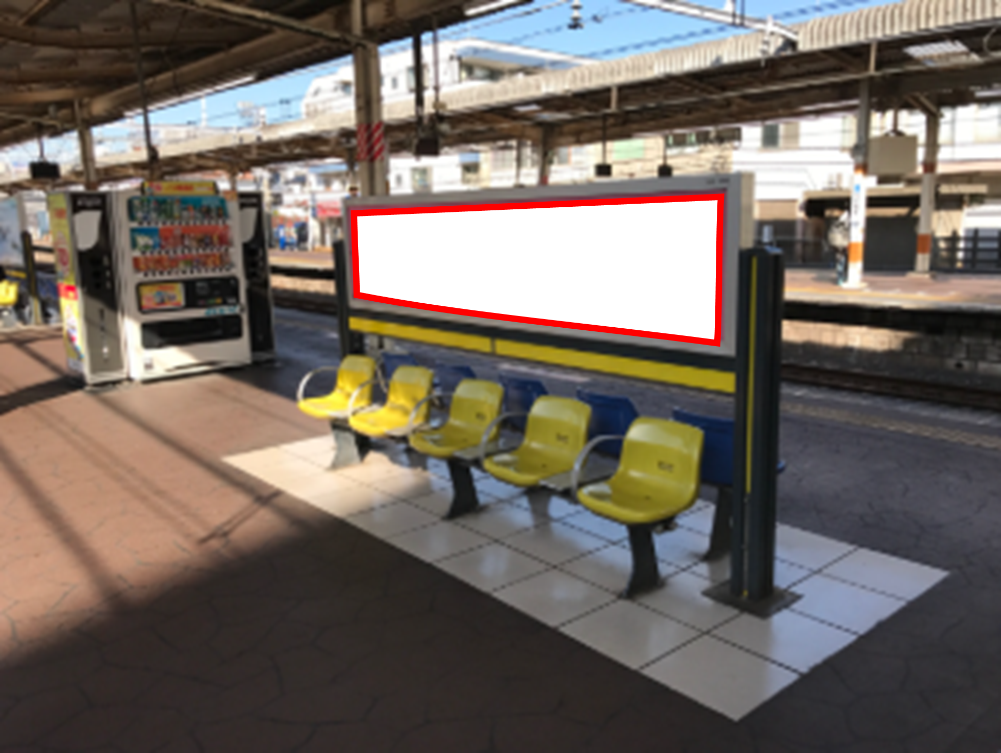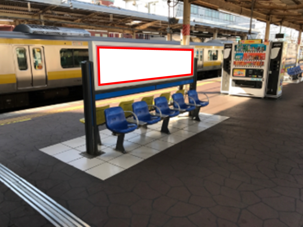 JR津田沼駅の3,4番線ホームに設置されているベンチ看板(両面)です。