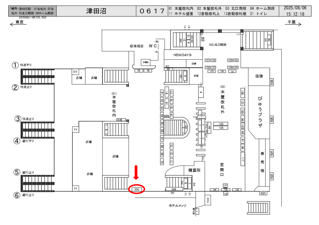 JR津田沼駅は一日の乗降客数が202,654人、総武線(快速)、総武線(各駅停車)が発着する駅です。