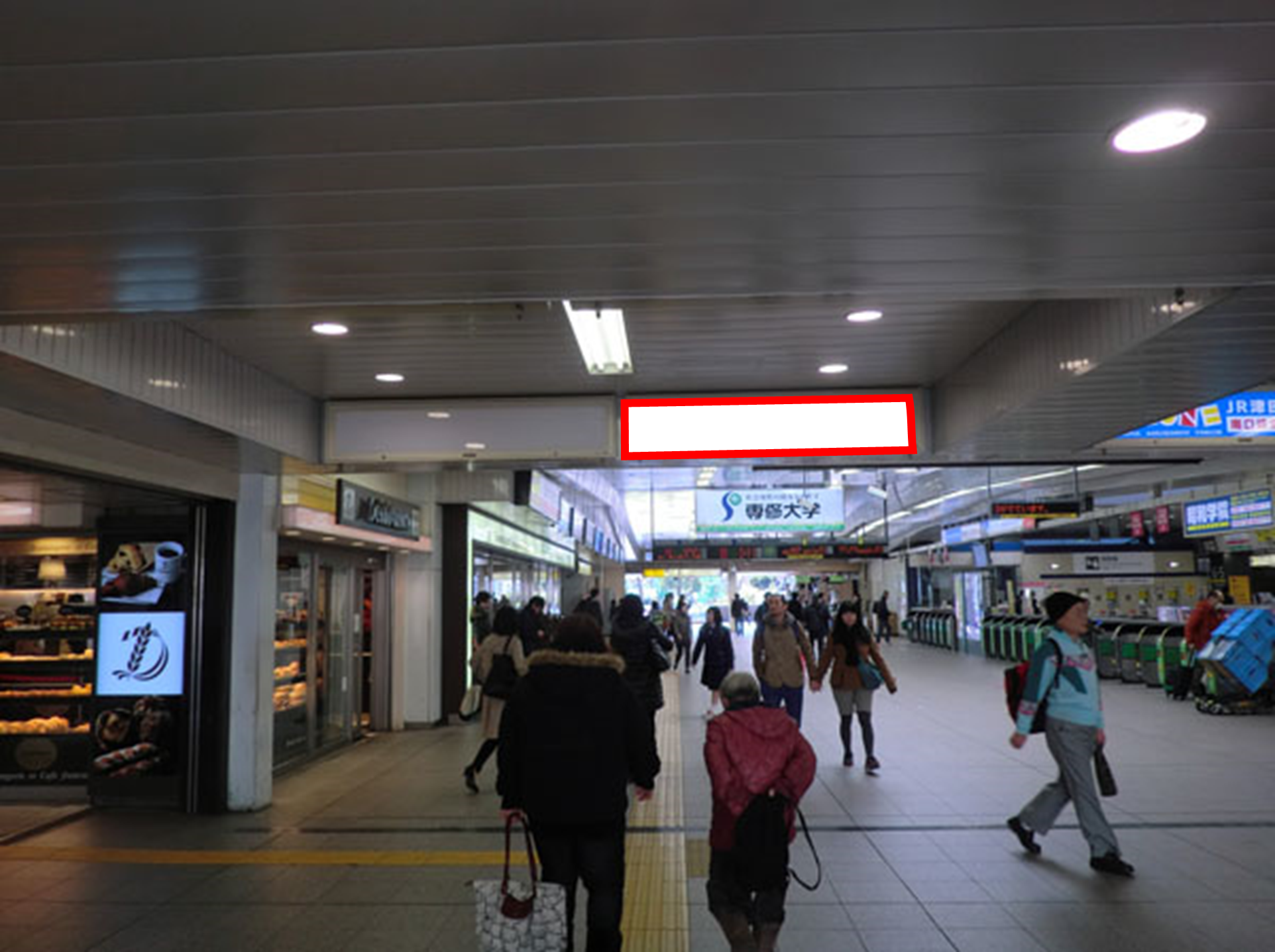 R津田沼駅の改札外、南口への通路に面して設置されている電飾看板です。