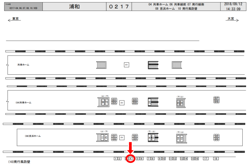 JR浦和駅の京浜東北線ホーム前(南浦和・上野・東京方面)、改札行きエレベーター付近に設置された看板です。