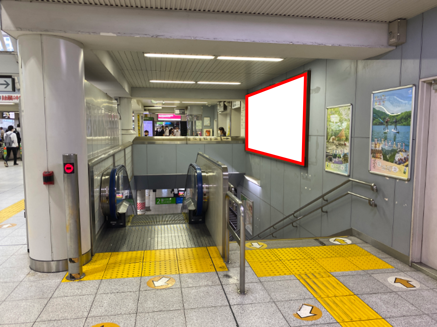 JR田町駅の改札内、1・2番線のホーム階段・エスカレーター横壁面に設置された看板です。