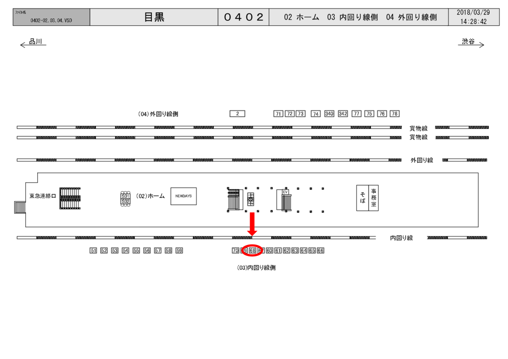 JR山手線、目黒駅の内回り線(大崎・品川・東京方面)ホーム前の電飾看板のご案内です。