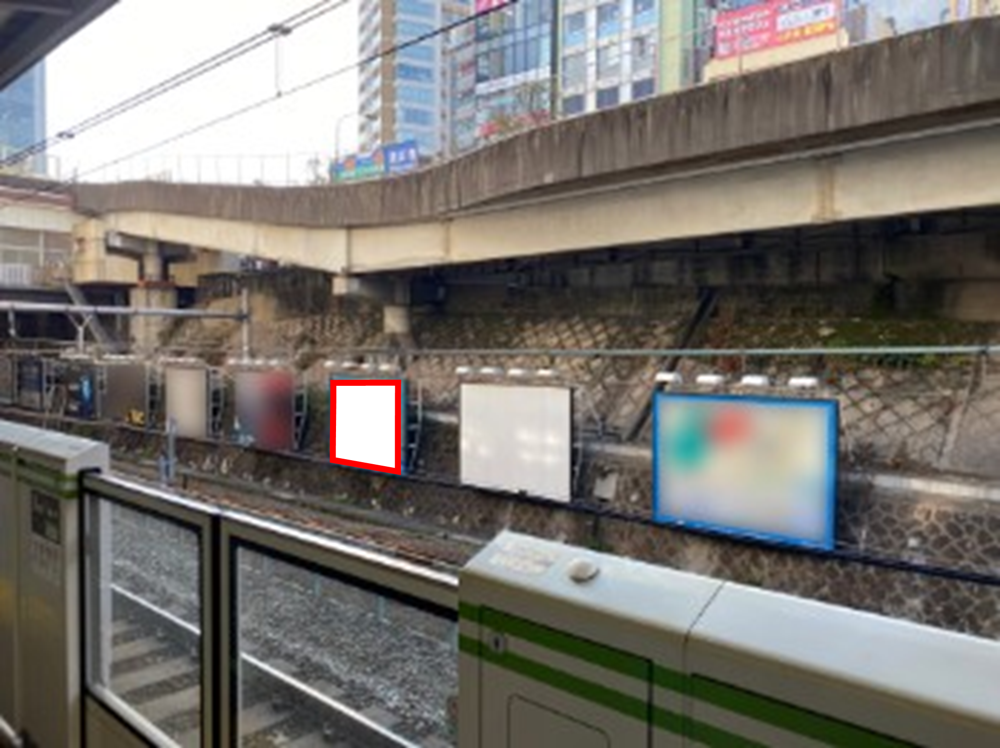 ■電車内や内回り線(品川・東京方面)側からも見えますので、沿線をご利用の方に広くアピールが可能です。