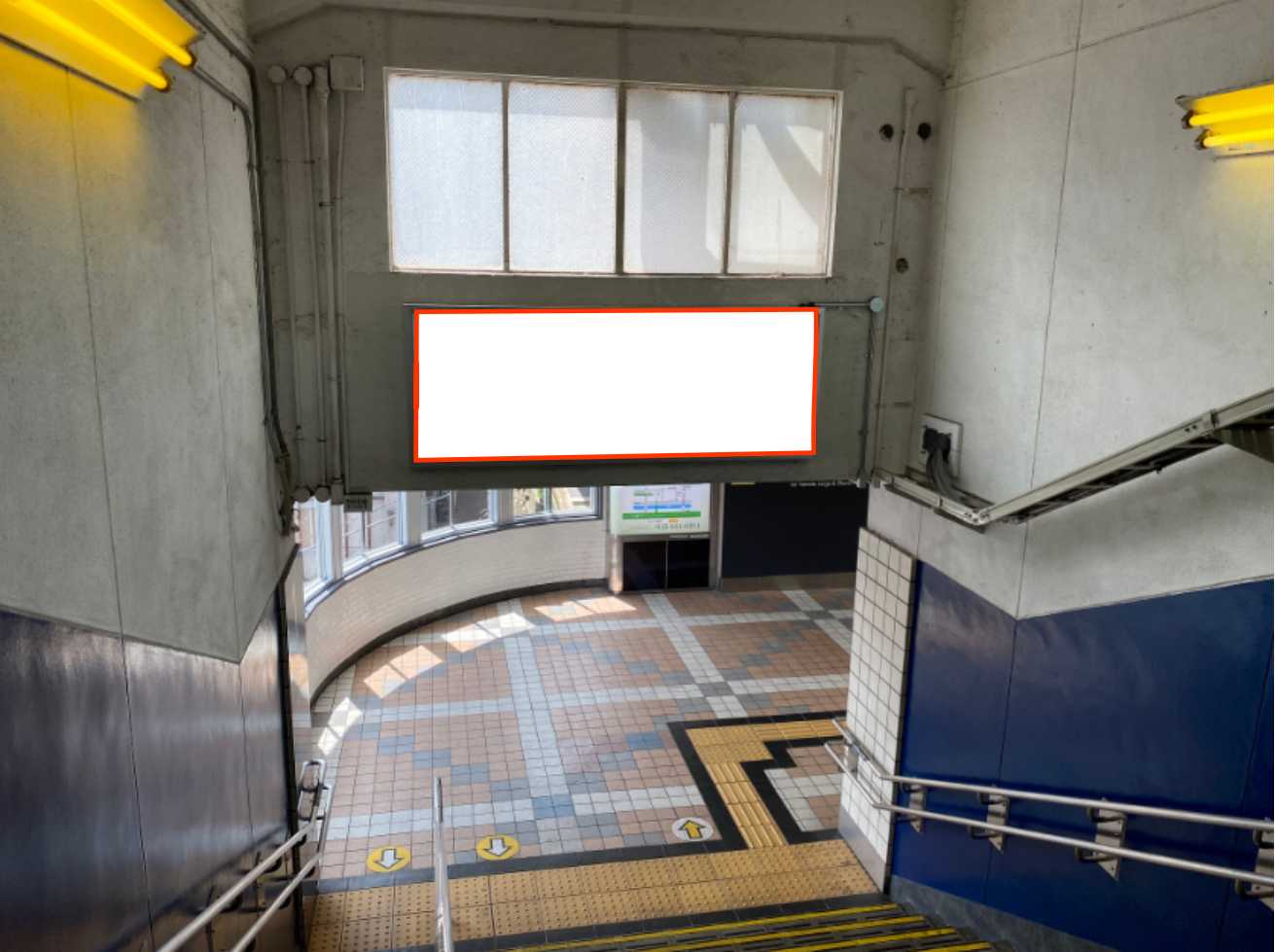 ■ホーム階段正面にありホーム・改札双方に向かわれるお客様が多くご覧になる視認性の高い看板です。