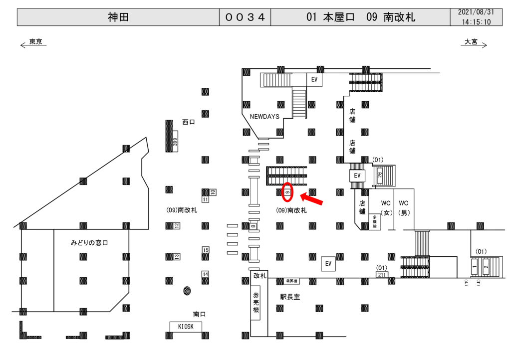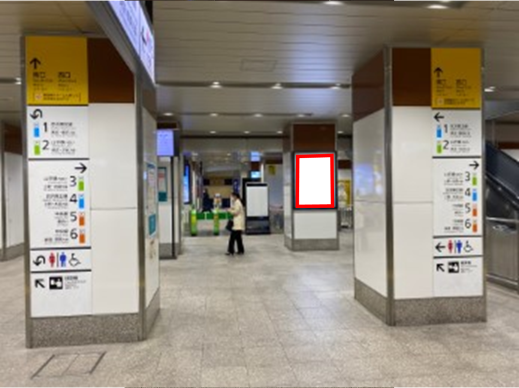 JR神田駅、南改札内の北行線ホームエスカレーター横の柱に設置された、電照看板のご案内です。