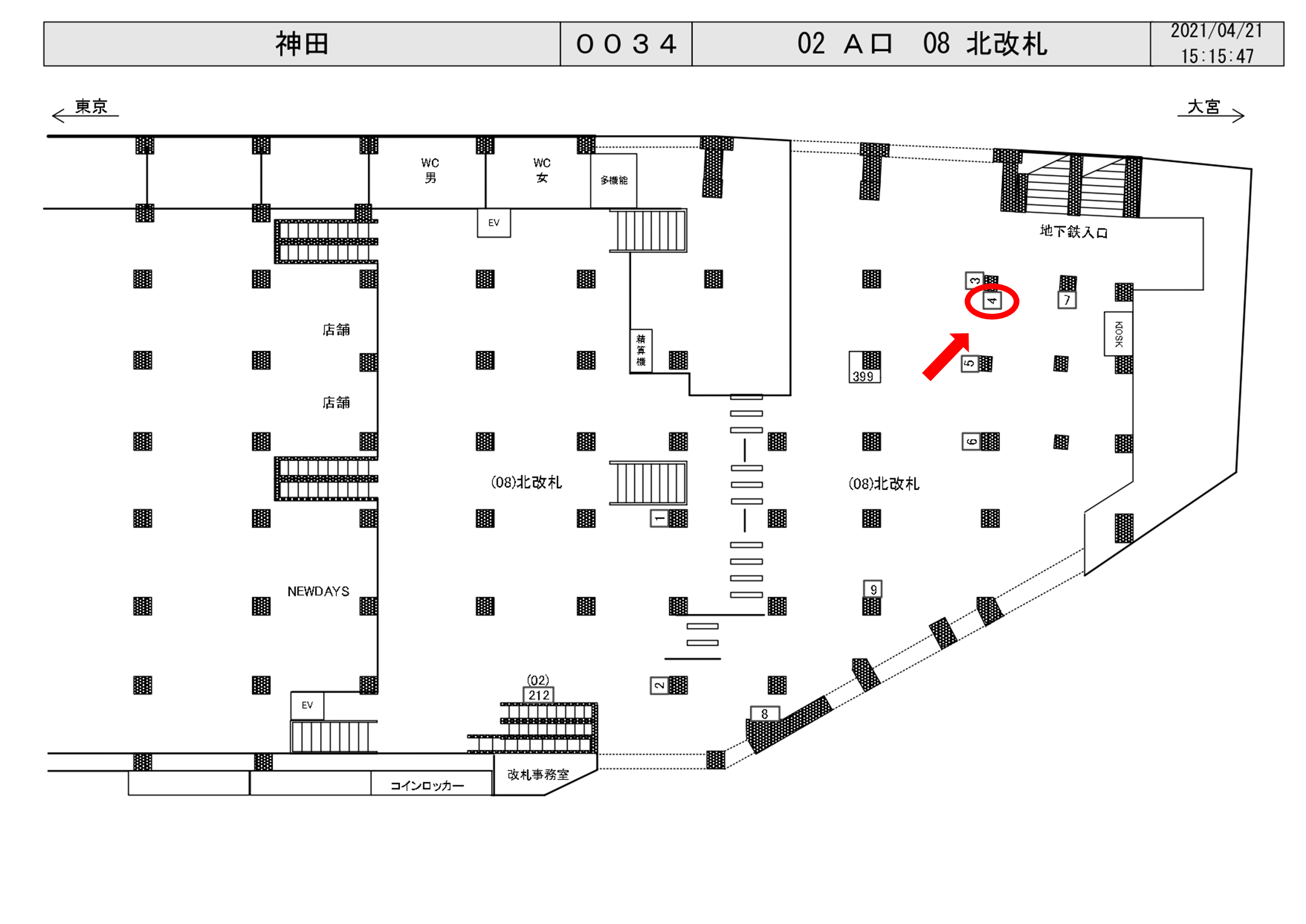 JR神田駅、北改札出口(改札外)改札前の柱面に設置されている看板のご案内です。