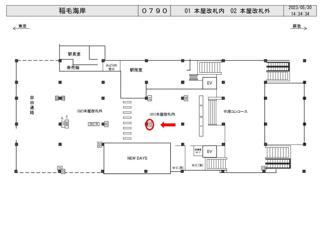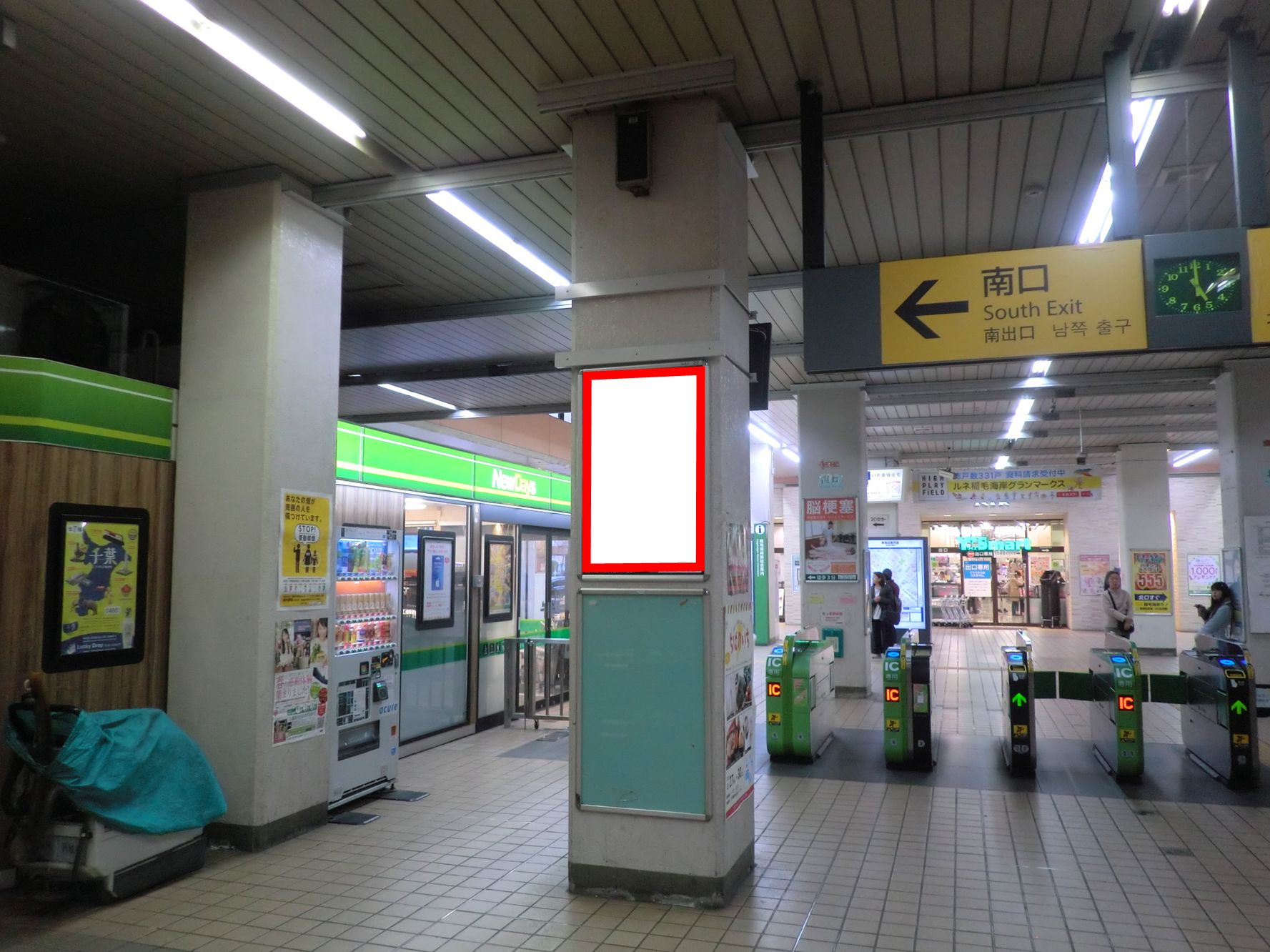 JR稲毛海岸駅の改札内にある改札前の柱面に設置された看板です。