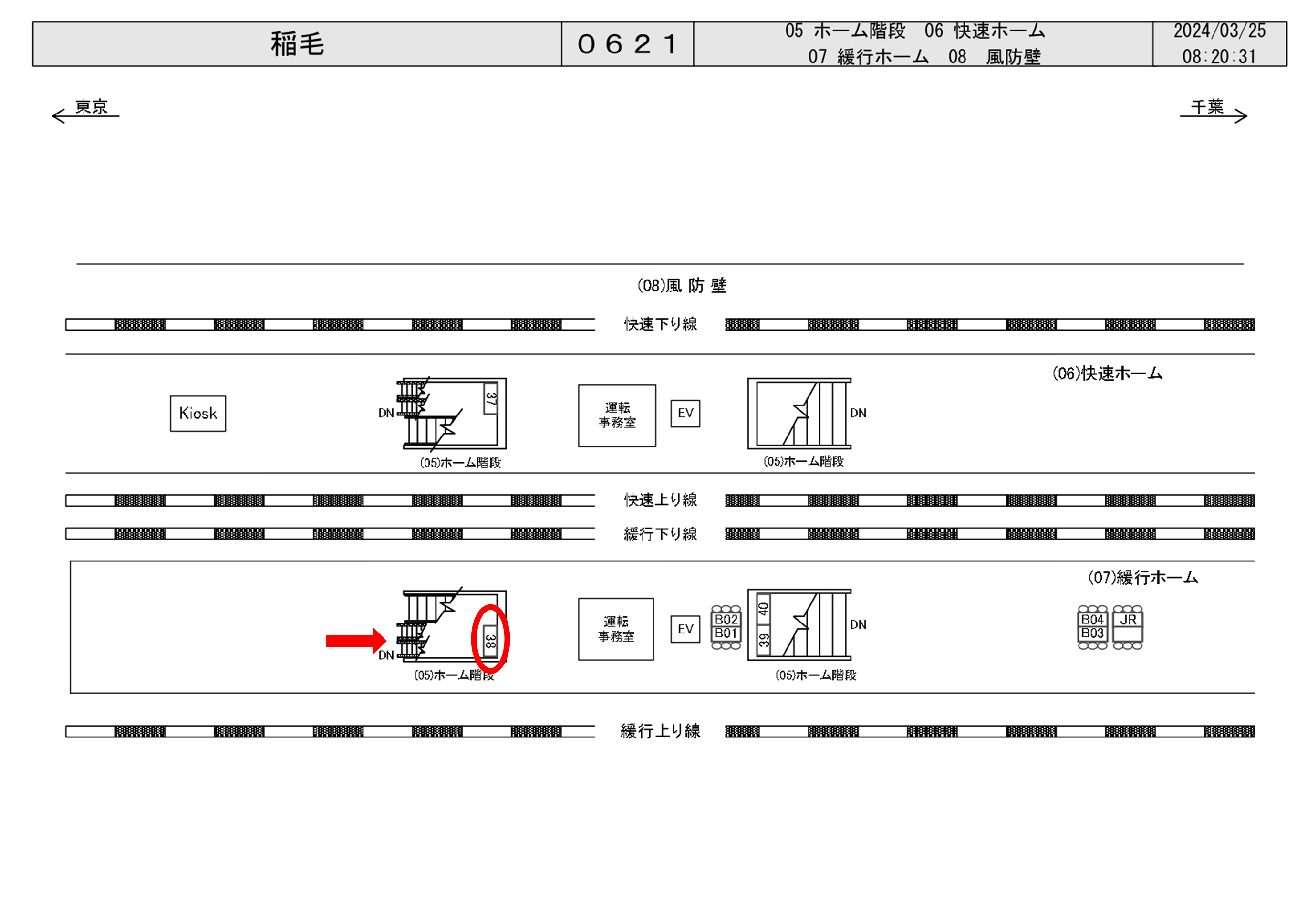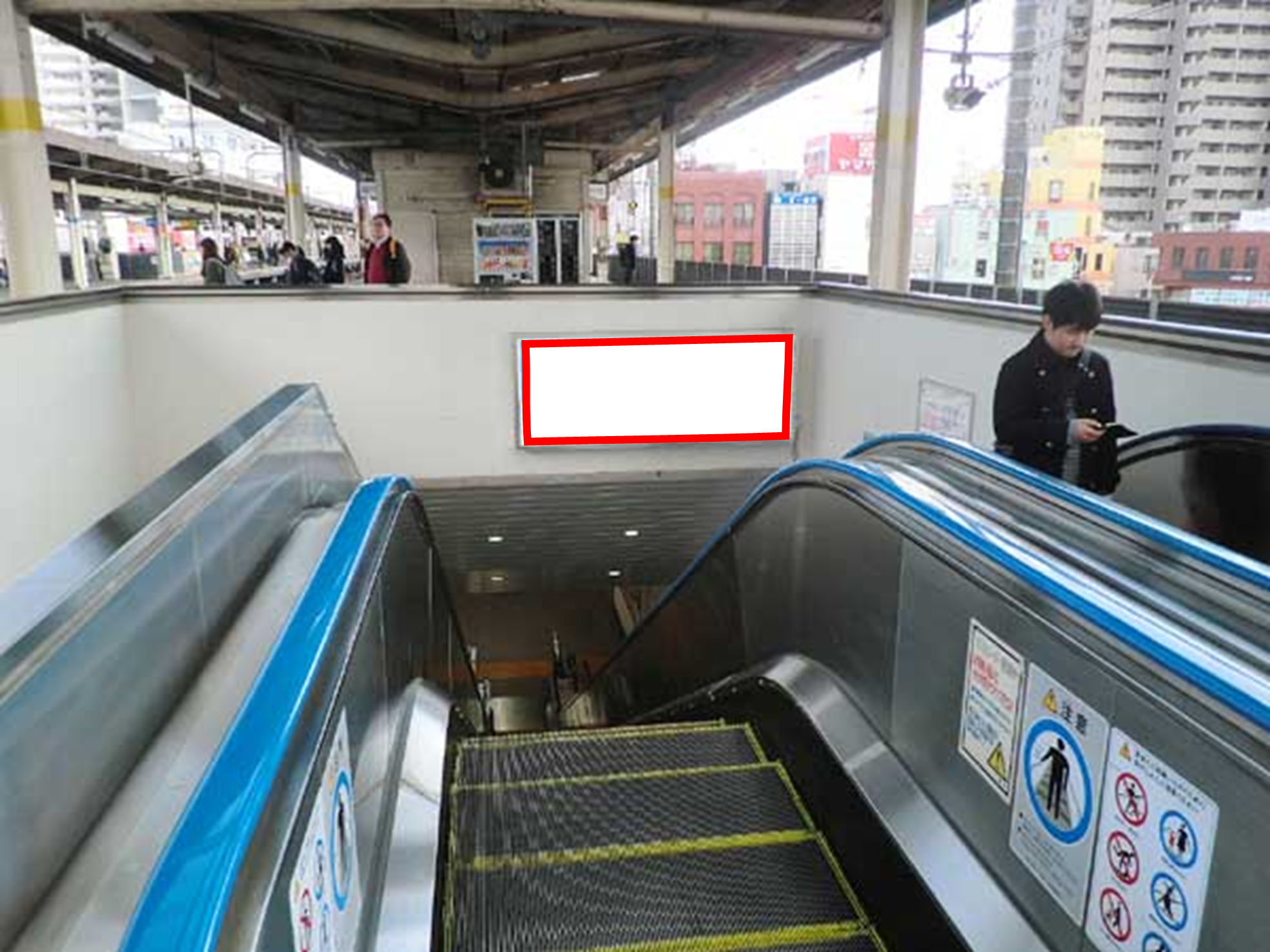 JR稲毛駅の各駅電車ホームエスカレータ正面に設置されている看板です。
