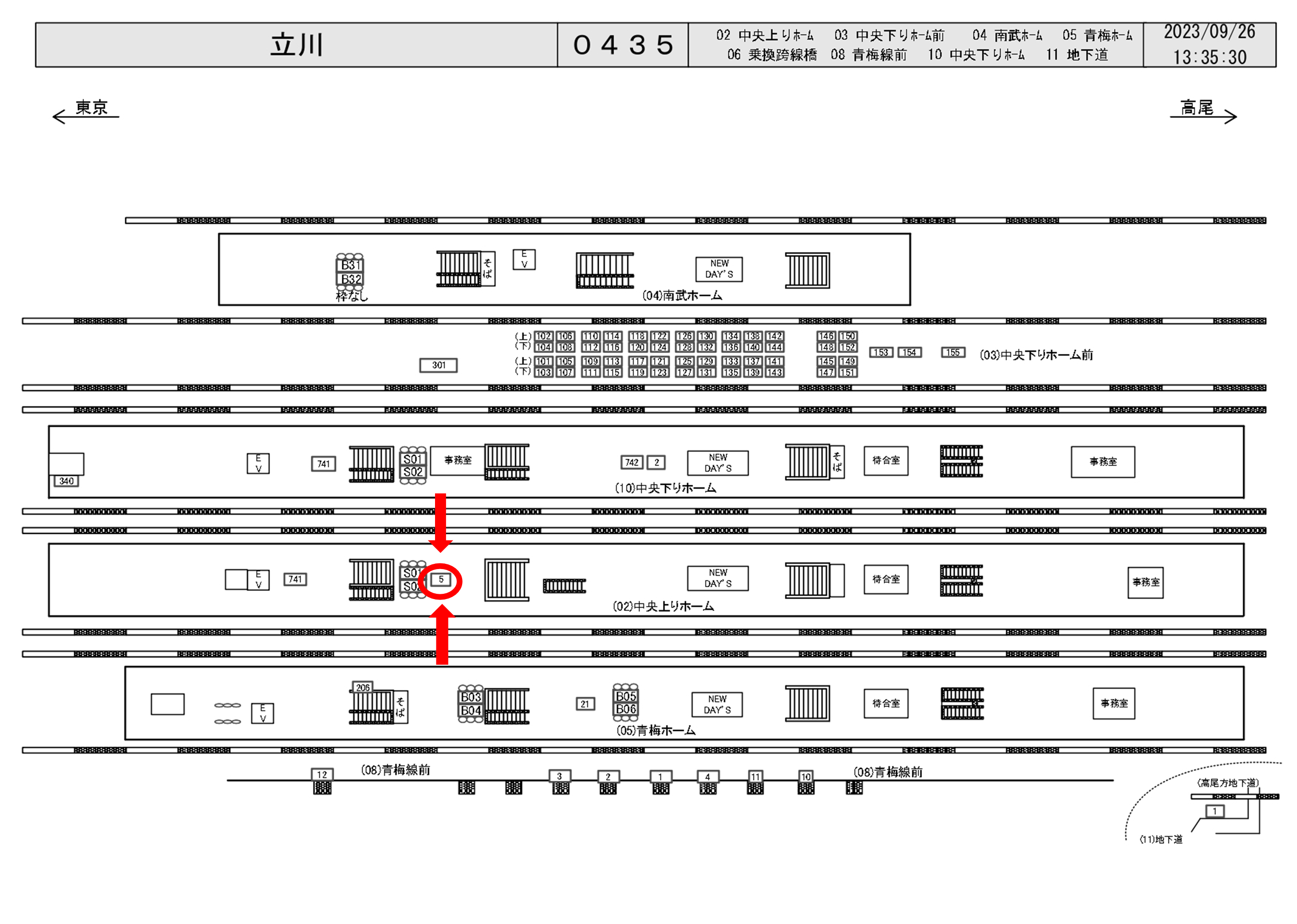 JR立川駅は一日の乗降客数が311,736人、中央線、青梅線、南武線、五日市線が発着する駅です。