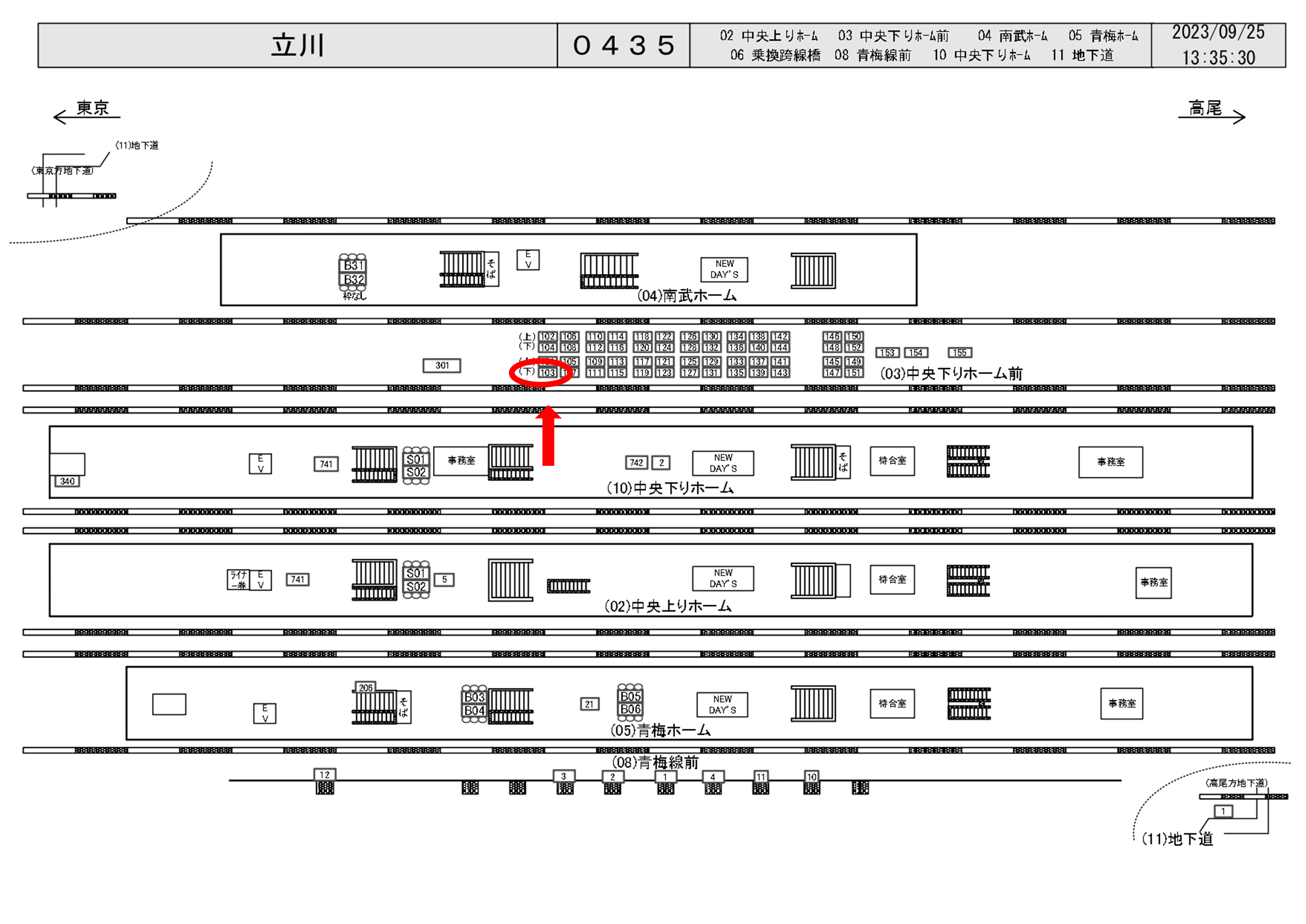 JR立川駅の中央線・中央本線(八王子・高尾・大月・甲府方面)ホーム(中央付近)前の電飾看板です。