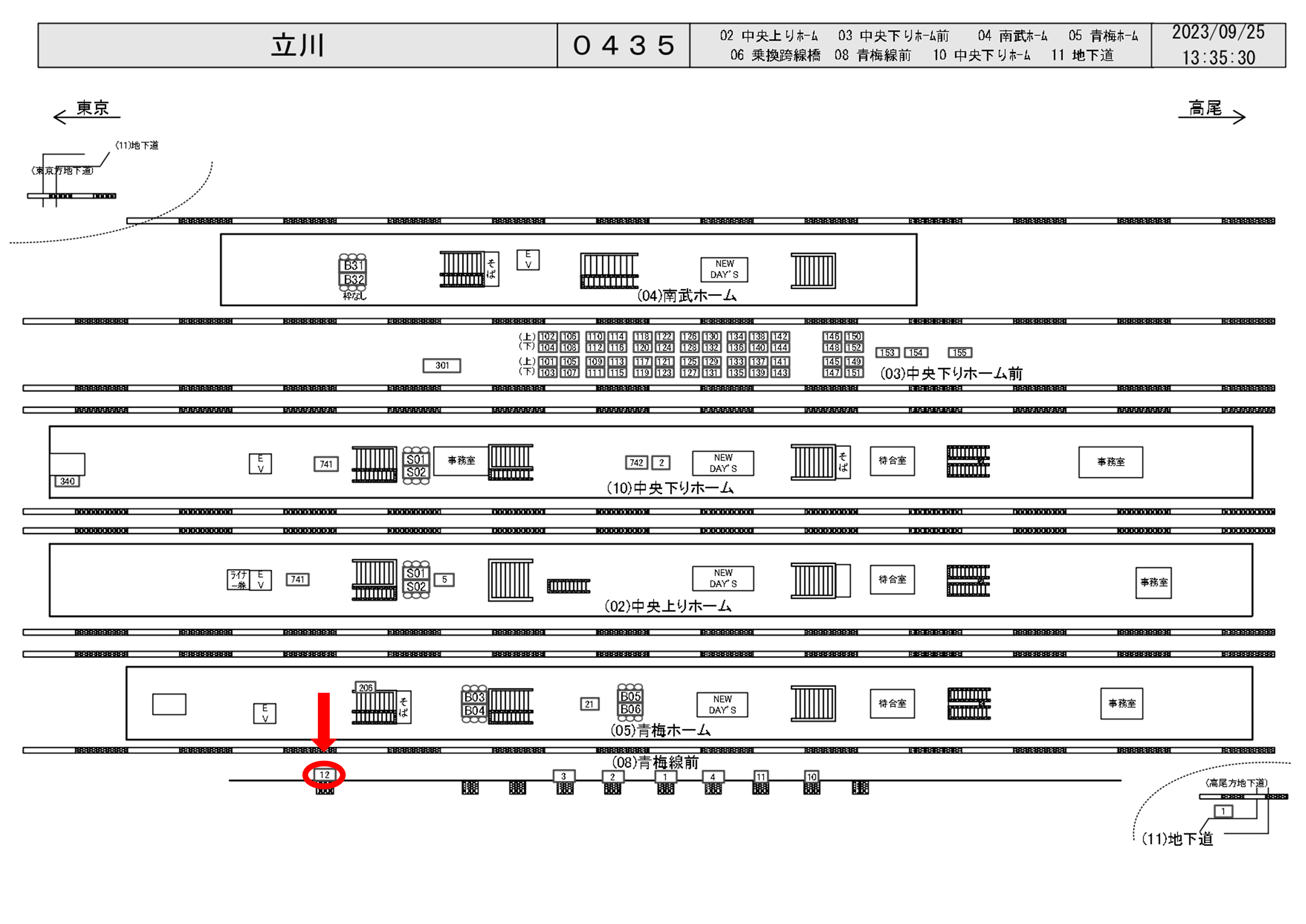 JR立川駅の青梅線ホーム前、ホーム階段付近に設置されている看板です。