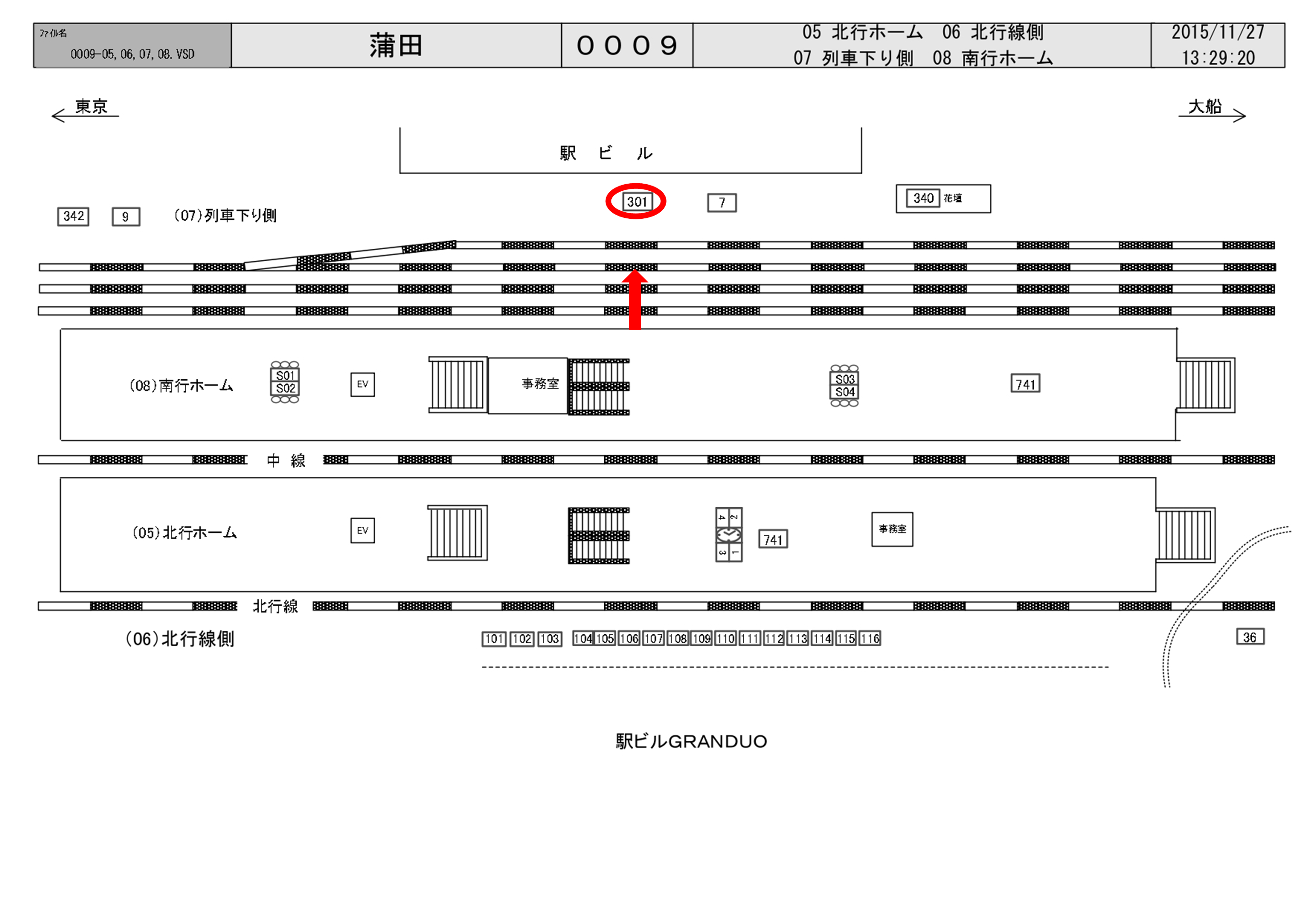 JR蒲田駅の京浜東北線(川崎・横浜・大船方面)ホーム前、ホーム階段付近に設置されている大型ボード看板です。