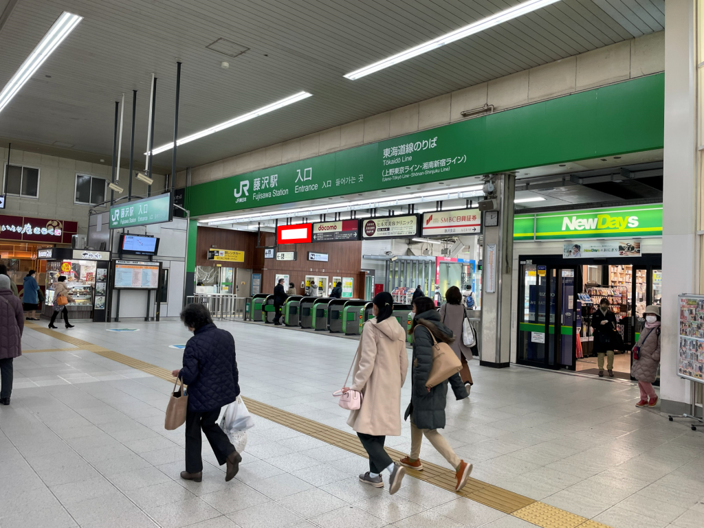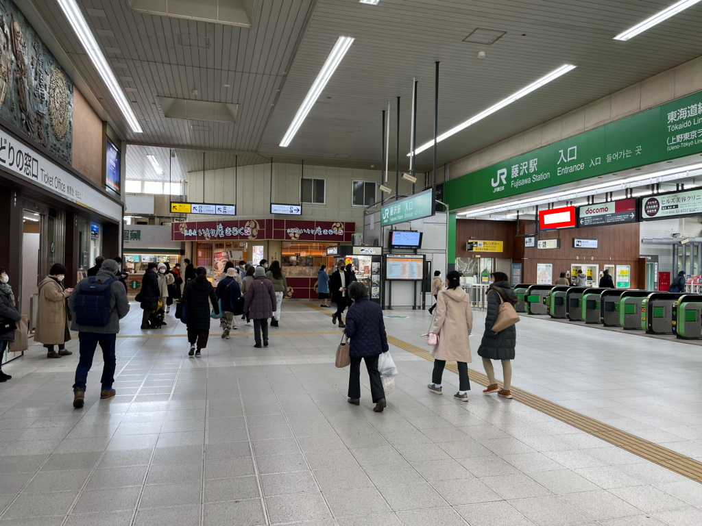 JR藤沢駅は一日の乗降客数が204,108人、東海道線が発着する駅です。