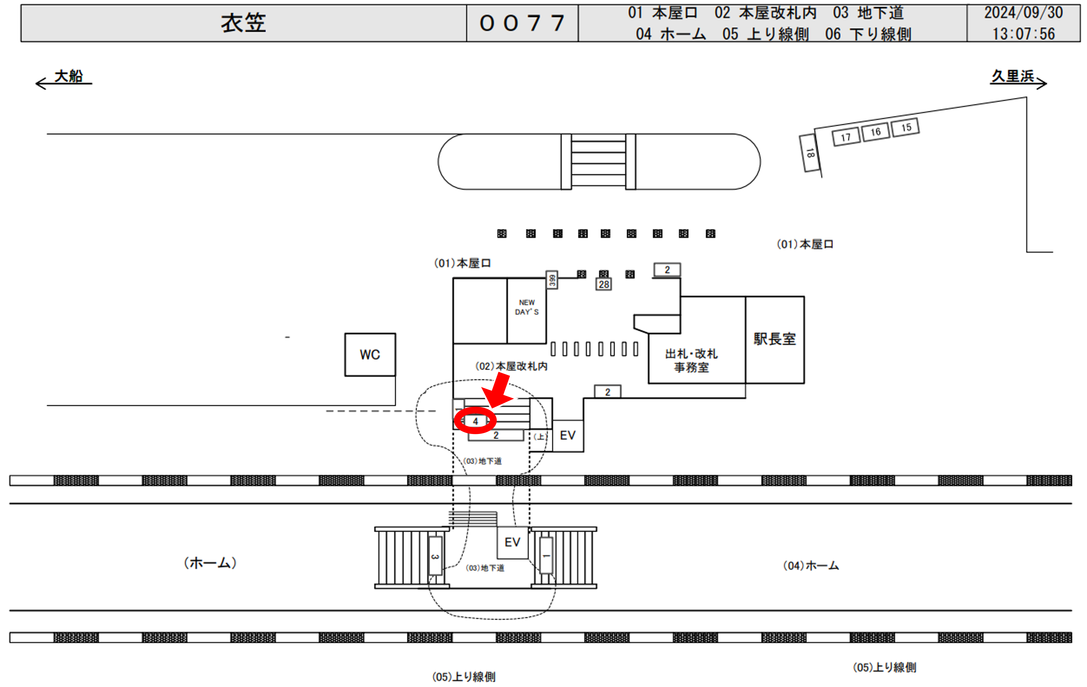 JR横須賀線 衣笠駅の改札内、地下通路に繋がる階段正面に設置された看板です。