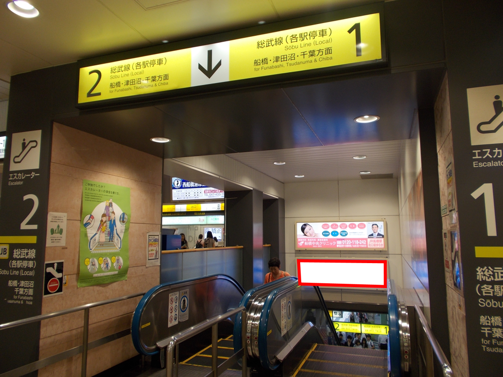 JR西船橋駅の総武線各駅下りホーム階段正面に設置された看板です。