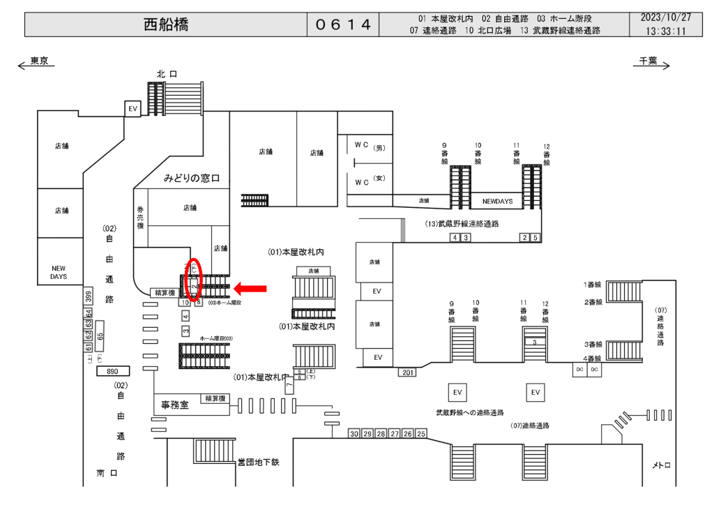 JR西船橋駅は一日の乗降客数が250,552人、総武線(各駅停車)、武蔵野線、京葉線が発着する駅です。