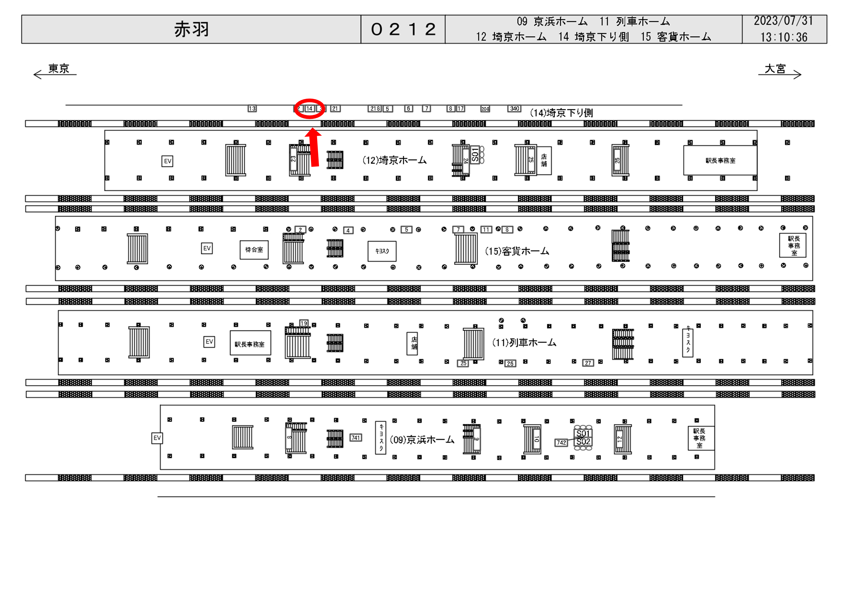 JR赤羽駅の埼京線下りホーム前に設置された看板のご案内です。