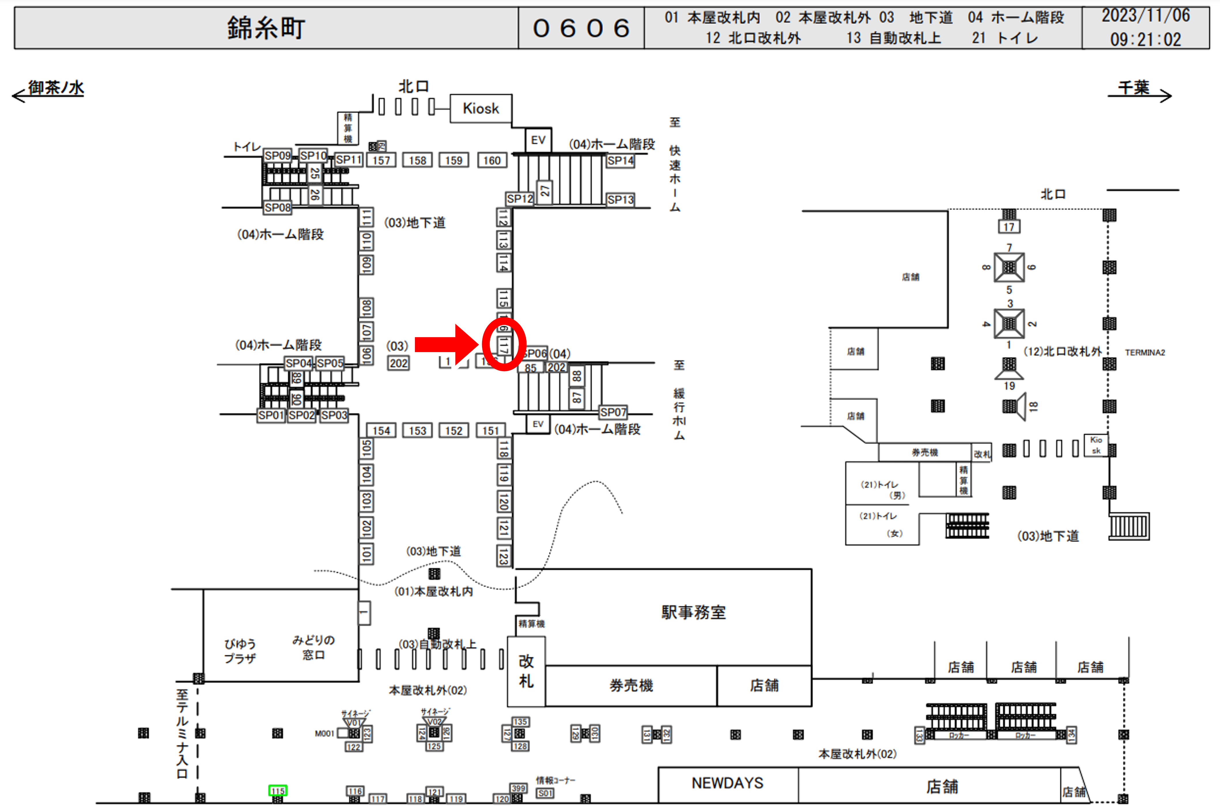 JR錦糸町駅の改札内通路、総武線各駅電車ホーム階段近くに設置された駅看板です。