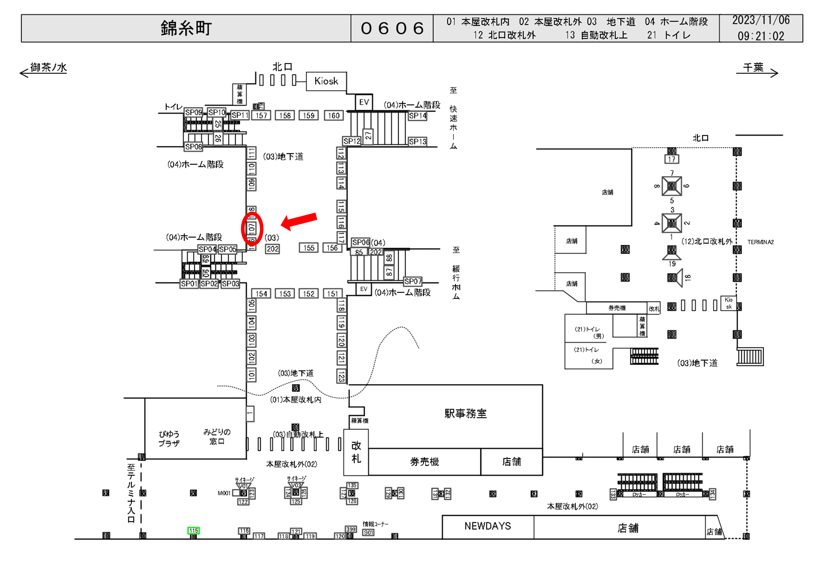 JR錦糸町駅の改札内地下道通路、各駅電車ホーム階段近くに設置された駅看板です。
