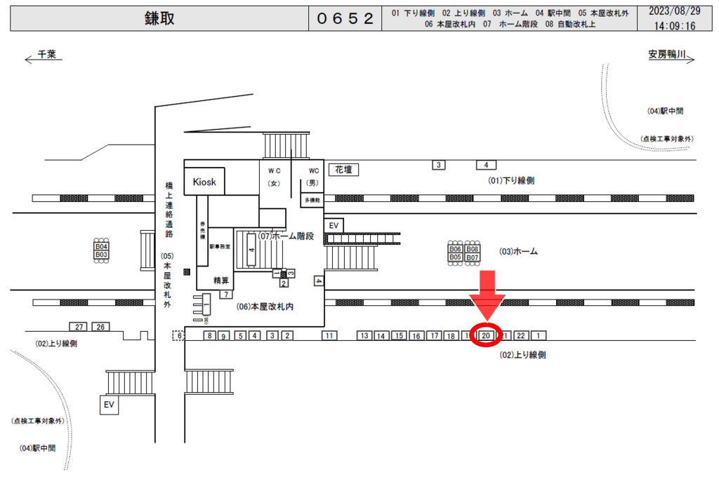 JR鎌取駅の外房線上り(千葉方面)ホーム前に設置された看板です。