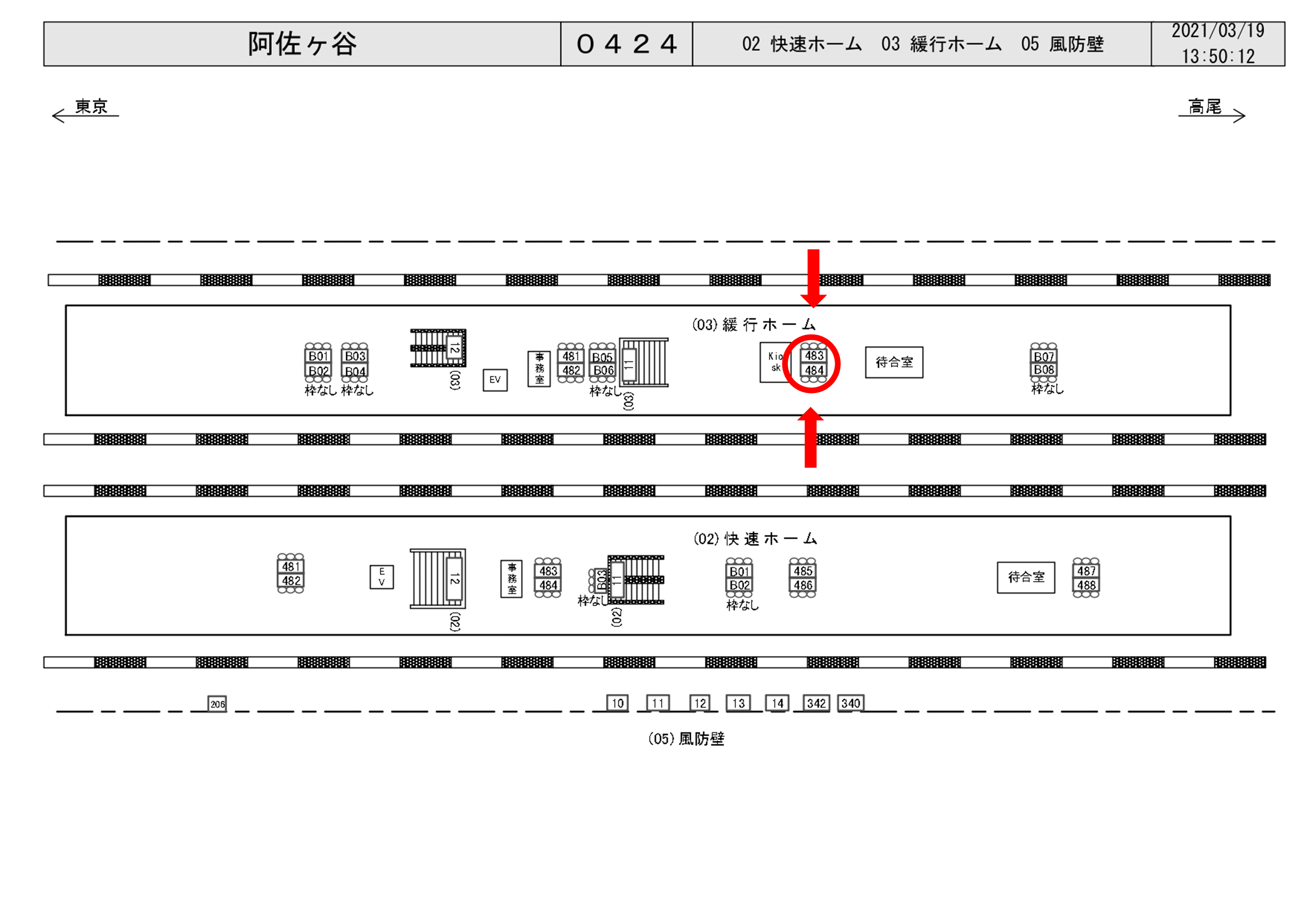 JR阿佐ヶ谷駅の総武線(各駅電)ホームのKioskと待合室の間に設置されているベンチ看板(両面)です。