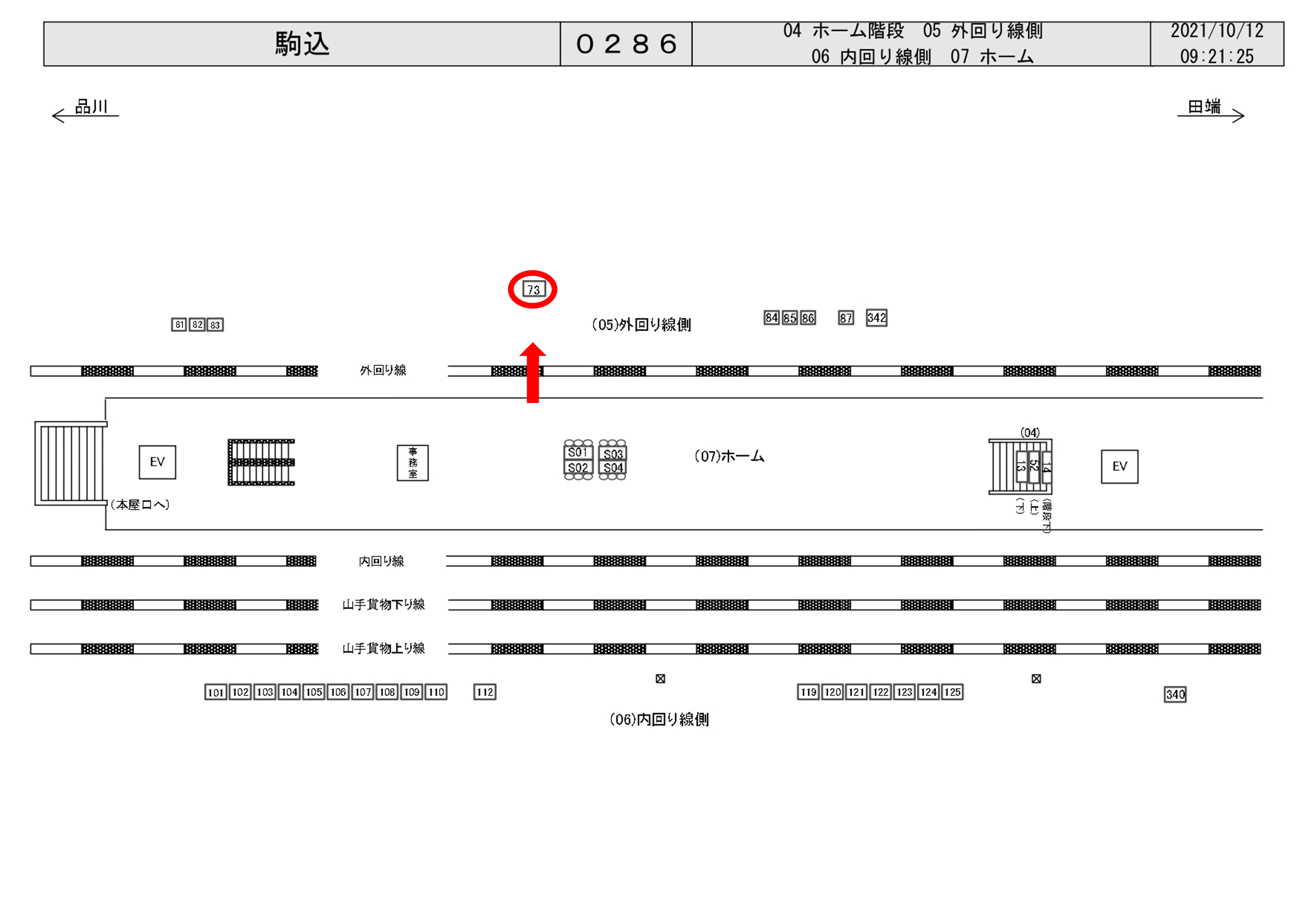 JR駒込駅、山手線外回り(上野・東京方面)ホーム中央付近に設置された大型ボード看板です。