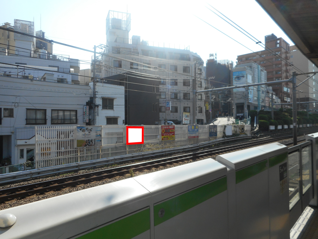 ■電車内や山手線外回り線(上野・東京・品川方面)側からも見えますので、沿線をご利用の方に広くアピールが可能です。