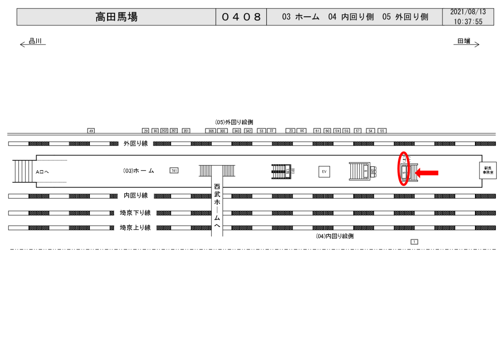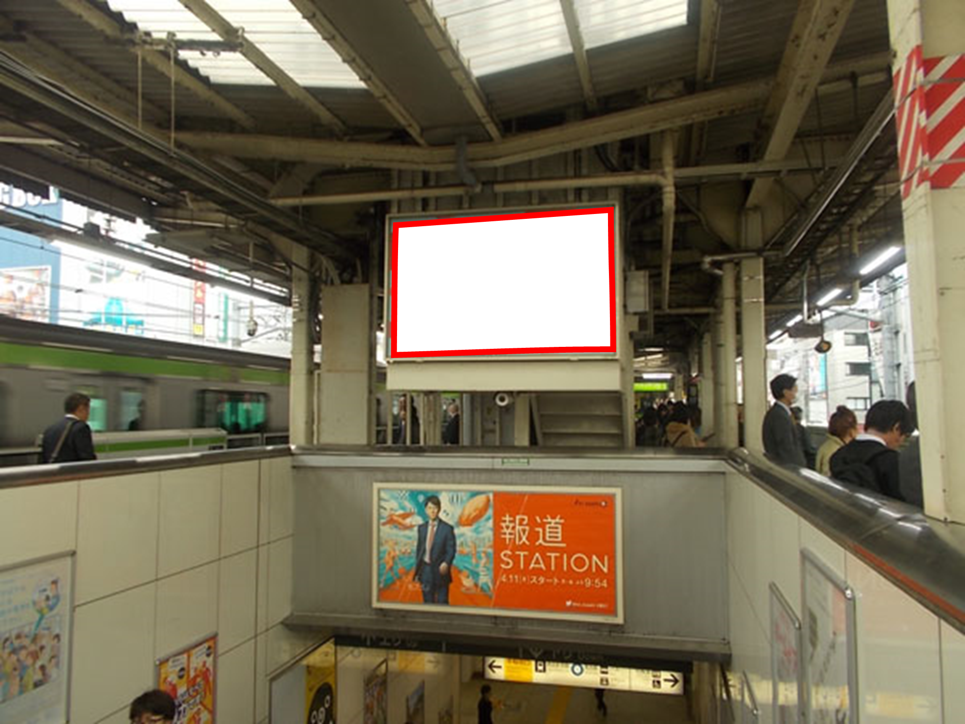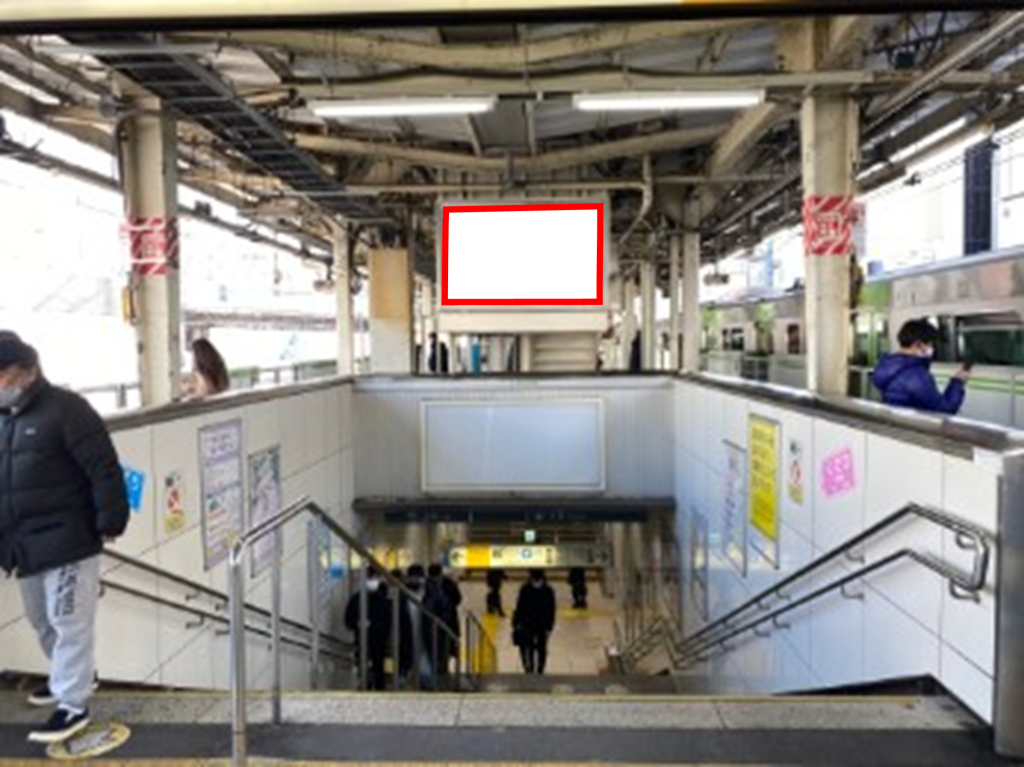 JR高田馬場駅のホーム階段正面に設置された視認性の高い看板です。