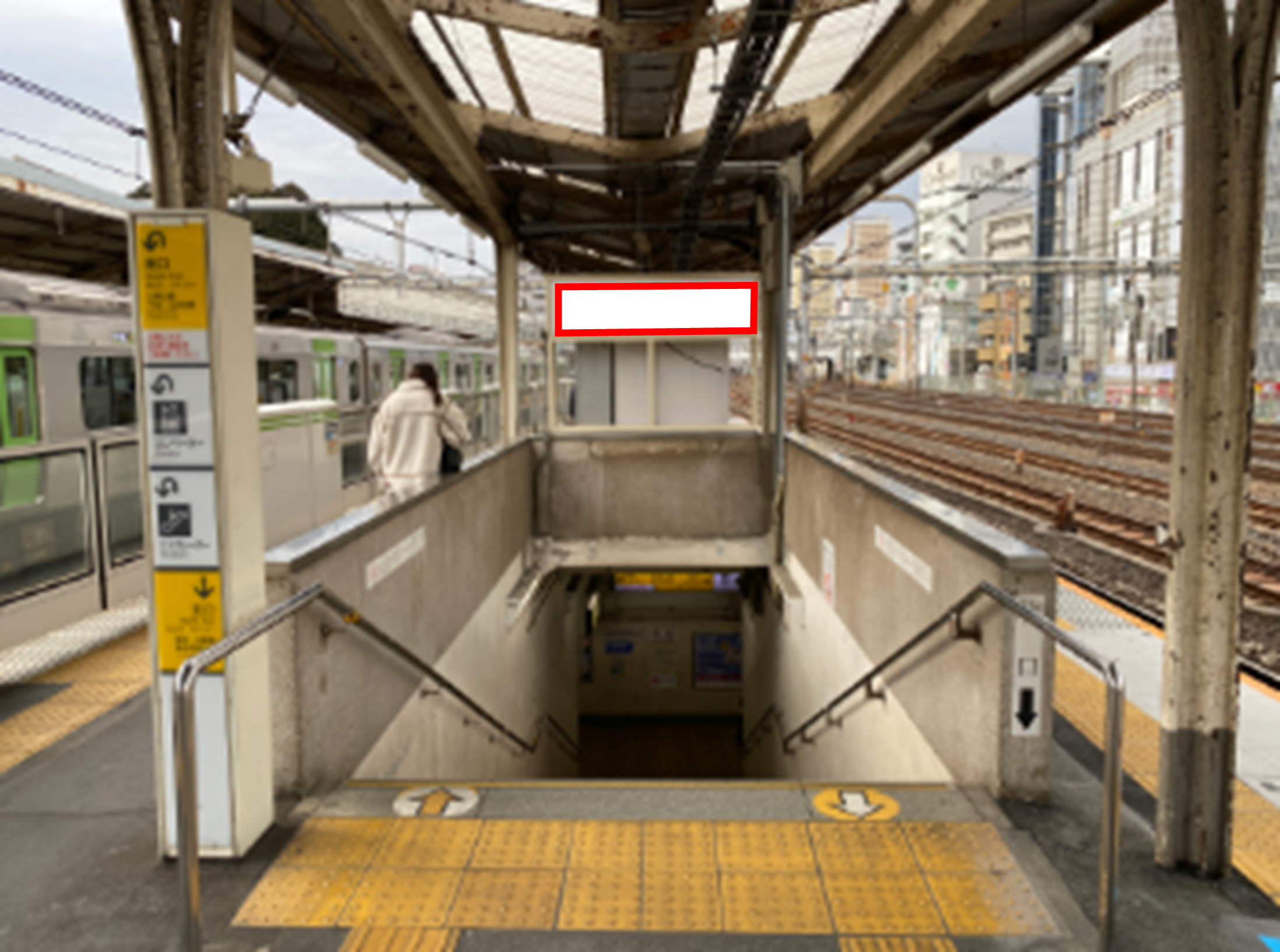 ■ホーム階段正面にありホーム周辺や北口に向かわれる大変多くの方にご覧いただける視認性の高い看板です。