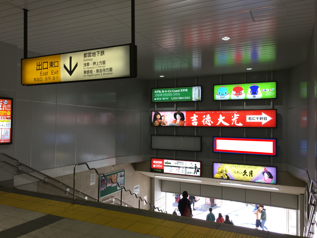 中央・総武線沿線、浅草橋・日本橋・神田・両国周辺での広告をお考えの方に最適な駅看板です。
